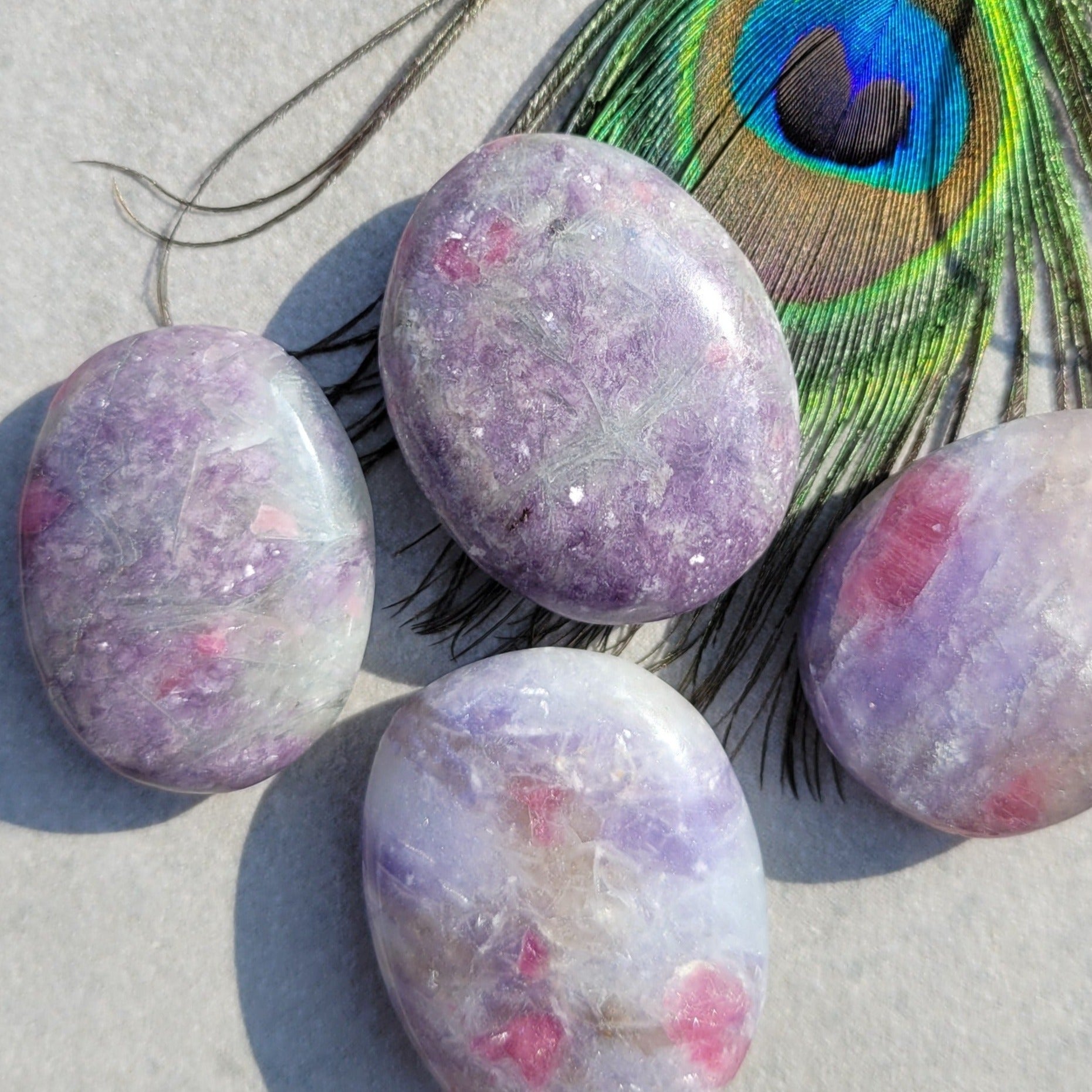 Rubelliet in lepidoliet, trommelsteen/ knuffelsteen